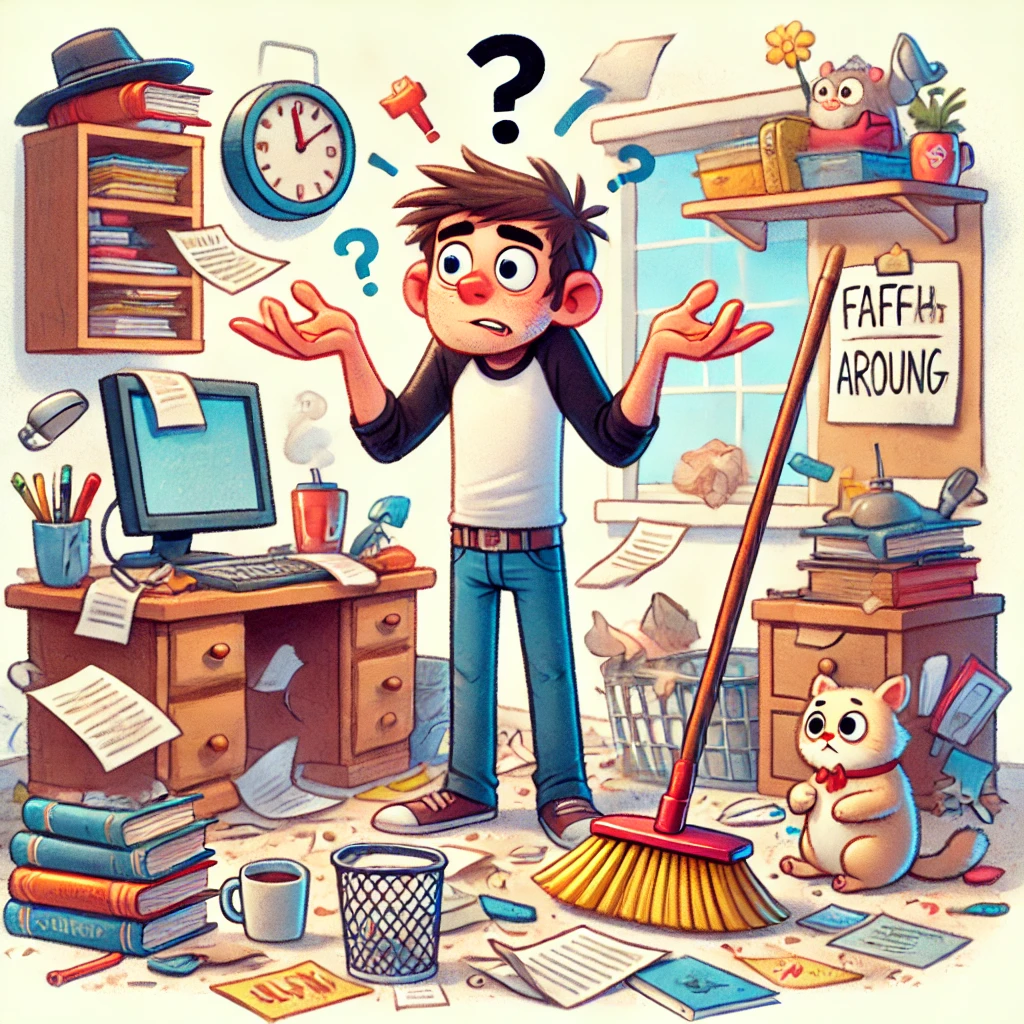 1. faff around(british)